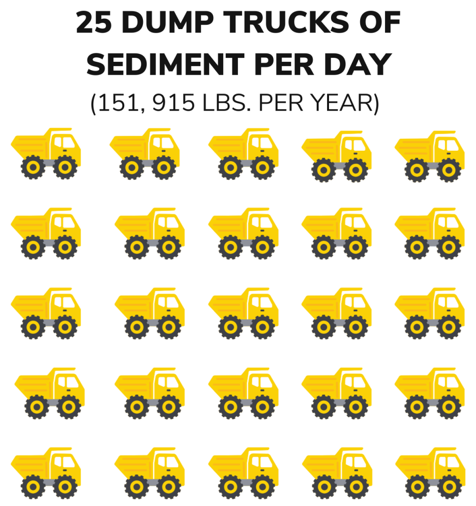 Sediment enters our waterways through a wide range of methods; however, it is most often attributed to urbanization and agriculture. By removing trees and other natural vegetation, the soil structure is disturbed, which leads to increased erosion and sedimentation.
