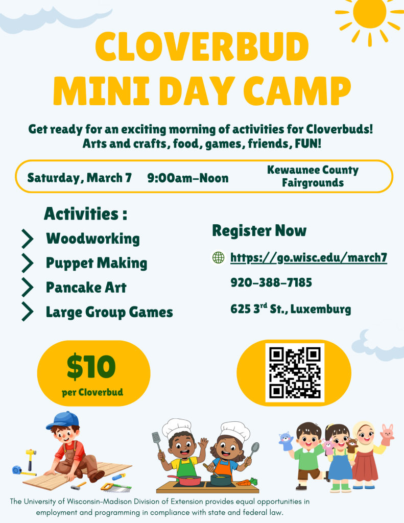Cloverbud Mini Day Camp Written by Linda Healey Posted on February 10, 2026 Share Share:Share on FacebookShare on X (Twitter) Share via EmailCopy LinkCopied! Mini Day Camp Registration