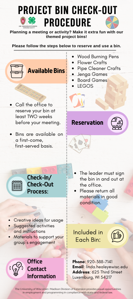 Who can join the Leaders’ Association Meetings? All enrolled, approved 4-H volunteer leaders are members of the Kewaunee County 4-H Adult Leaders’ Association. We would love to see you at the meetings!