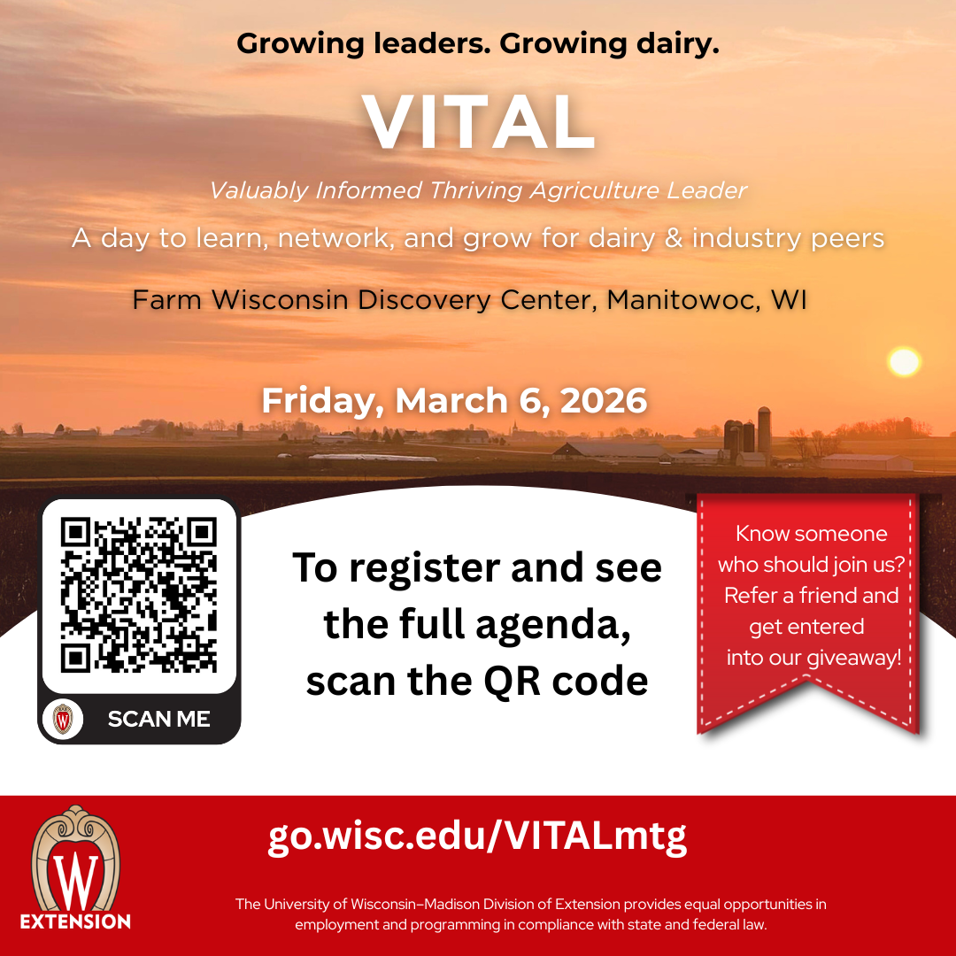 Valuably Informed Thriving Agriculture Leader (VITAL) Downloadable 2026 VITAL Agenda Register for VITAL Thank you to our generous sponsors! Family Insurance Center Country Visions Cooperative Green Bay Insurance Center Greenstone Farm Credit Services Kewaunee County Farm Bureau Manitowoc County Farm Bureau Lakeshore Farm Management Brown County Farm Bureau Door County Farm Bureau Nicolet Bank Compeer Financial Bank First Rural Mutual Insurance – Paige Strauf Insurance & Financial Services