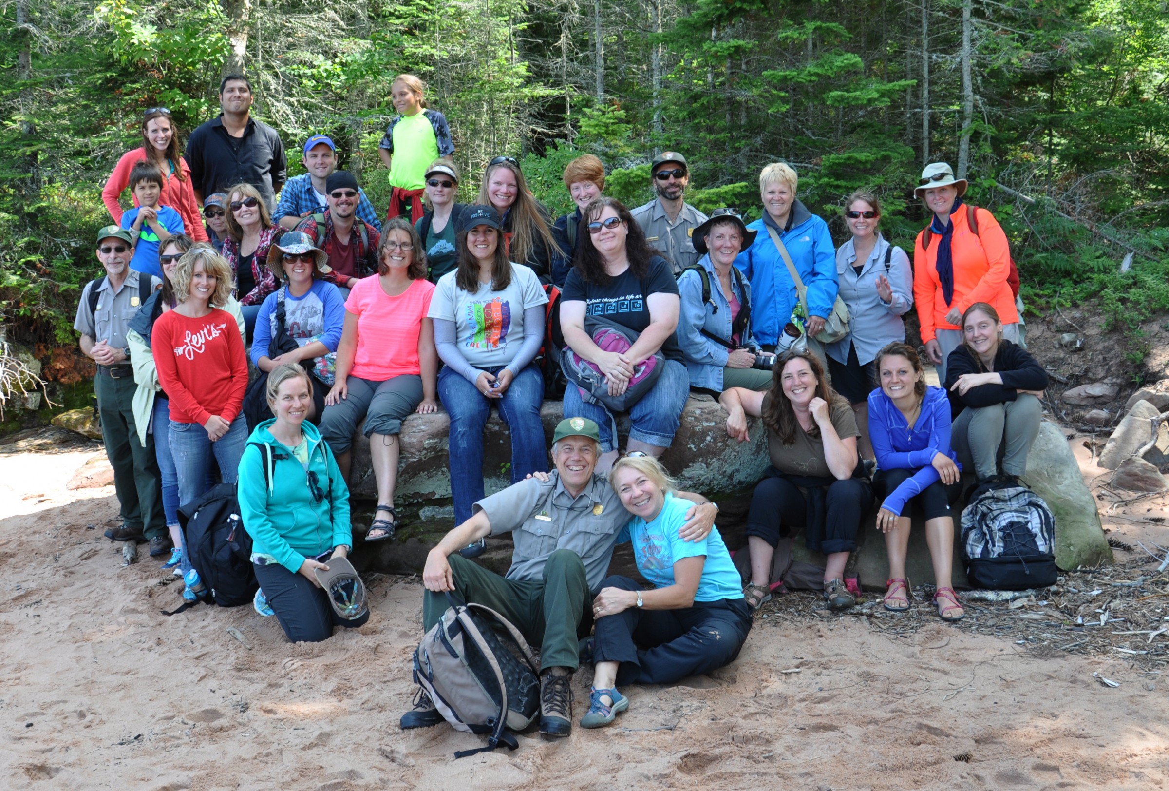 2015 G-WOW Institute participants and directors Cathy Techtmann-UW Extension and Neil Howk-Apostle Islands National Lakeshore after a day investigating place-based climate impacts on Lake Superior’s Stockton Island.