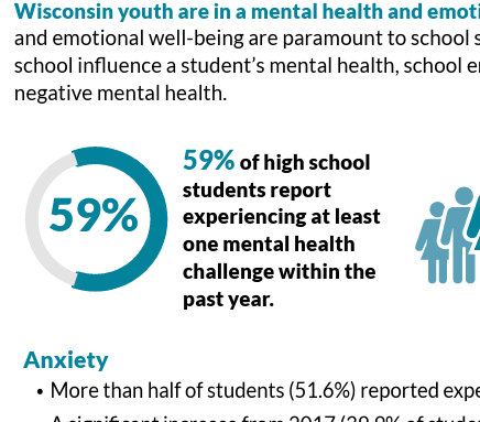 The Wisconsin Youth Risk Behavior Survey (YRBS) has been conducted every two years since 1993. The health-risk behaviors monitored include mental health, traffic safety, weapons and violence, suicide, tobacco use, alcohol and other drug use, sexual behavior, nutrition, and exercise. The 2023 study is based on a scientific sample of 1,882 students at 42 randomly selected high schools.