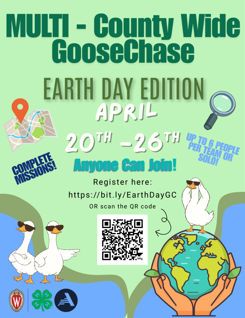Join the 4-H Earth Day Fun with an all new Goosechase scavenger hunt! Published on April 2, 2026April 2, 2026 by MEGAN MARIE SUEHRING Complete missions to earn points. Make it into the top three teams to win a prize! Register at: https://bit.ly/EarthDayGC.