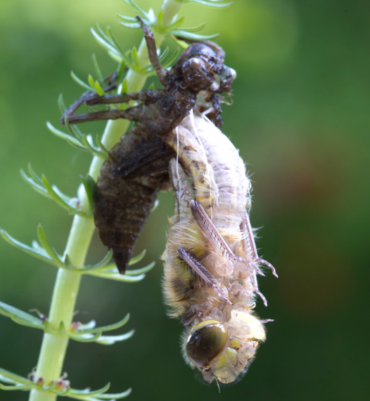 Many of the insects that call Upham Woods home begin their lives underwater, before undergoing metamorphosis and become terrestrial adults. Probably the most interesting case of this is the dragonflies and damselflies. As adults, these closely related and colorful insects are fast flying predators, able to snatch up mosquitoes and flies with unmatched speed and agility. As young though, they possess a different range of adaptations, particularly dragonflies. The aquatic dragonfly nymphs boast an extendable lower jaw for catching food, an unmatched appetite, and even a jet propelled abdomen. Although these features are fascinating in and of themselves, they are almost nothing compared to the process the nymph goes through to become an adult.
