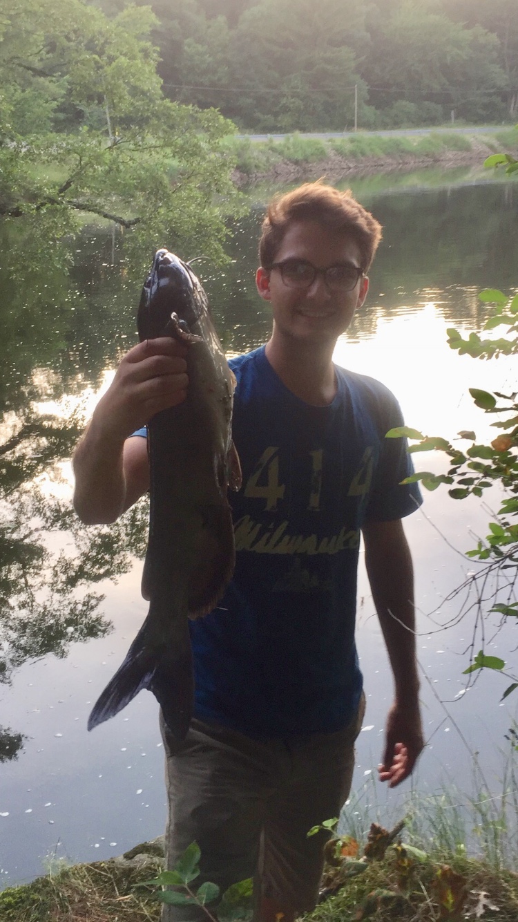 After a few tries, I finally net the beast and, to my amazement, it is none other than a Wisconsin channel catfish (you can tell by the forked tail), and a fat one too. What a surprise! Lures like these are meant to attract aggressive fish like bass or Northern Pike; whereas catfish are typically caught passively on stink baits such as cheese or liver. This must have been one hungry catfish! Another naturalist, Chris, arrived just in time to witness the battle between myself and this backchannel cat. The fish measured 24 inches from tip to tail. Even if the fishing is slow at times, moments like these make it all worth it.