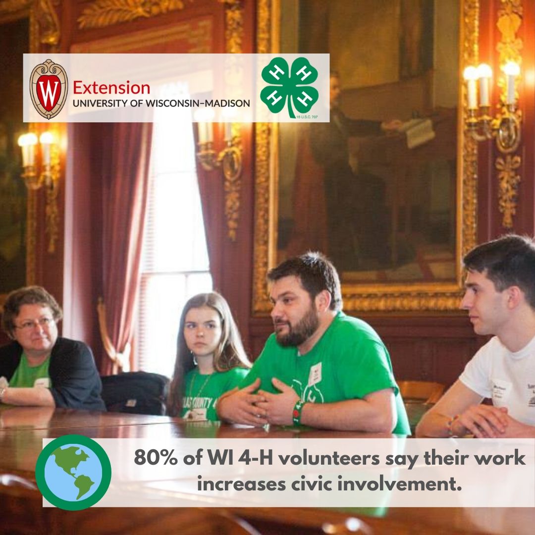To volunteer, contact the Wisconsin 4-H Youth Development staff member in your County Extension Office.